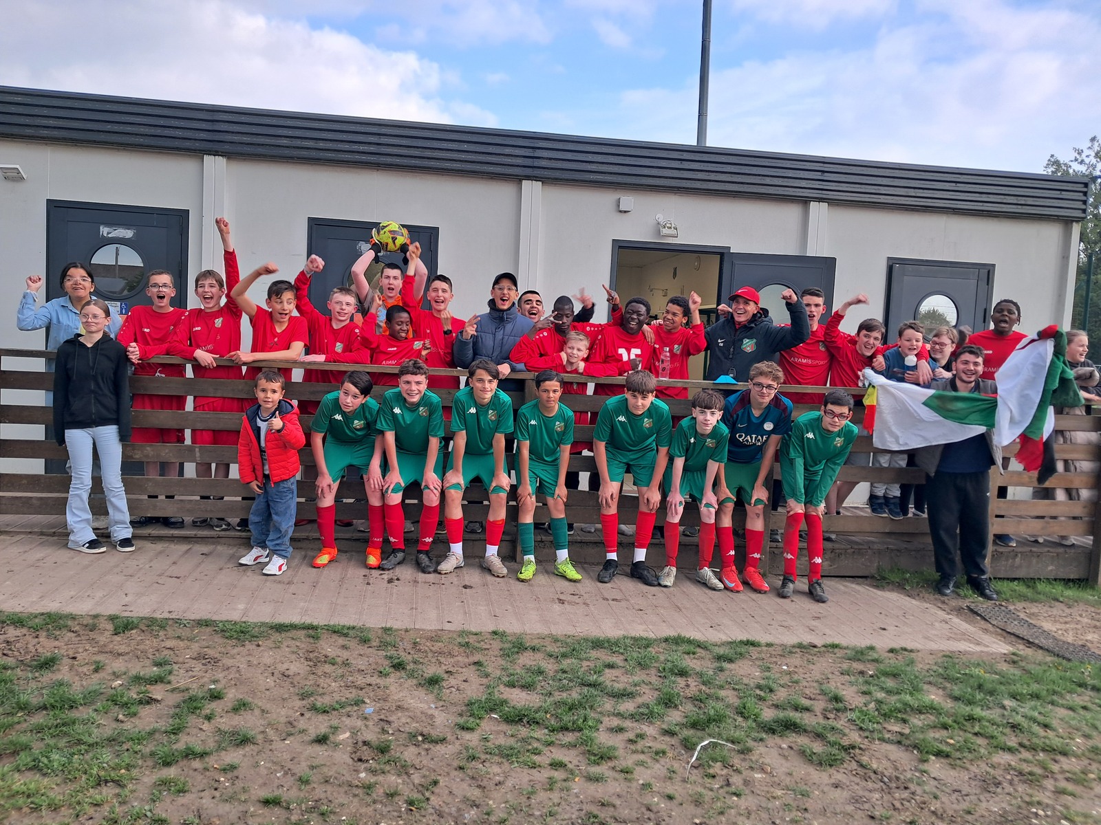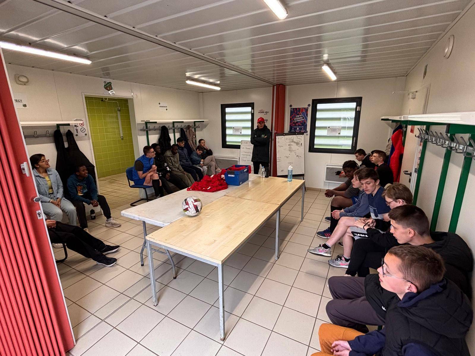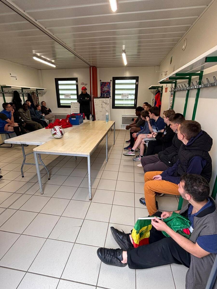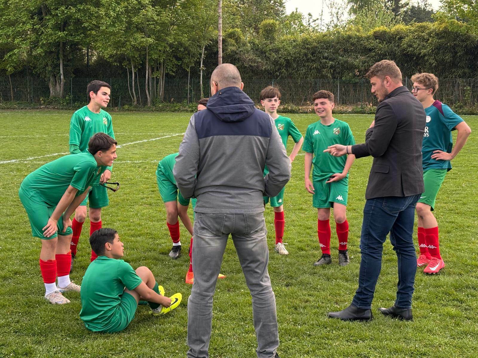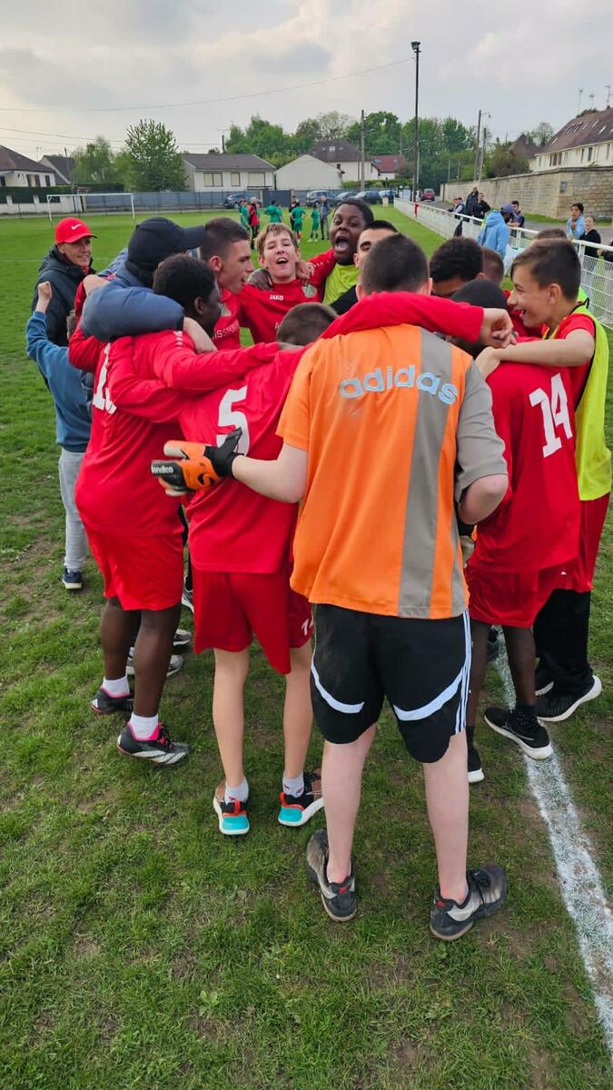 Le sport, et le foot en particulier, est un réel facteur d’inclusion et d’intégration sociale. On a pu encore s’en rendre compte jeudi soir au stade Thierry Doret dans le cadre de notre partenariat avec l’IME de St Leu.En effet, une opposition avait été organisée entre un mixte de u14-u15 du club et une équipe de jeunes de l’IME.La rencontre s’est déroulée dans un excellent état d’esprit et le respect réciproque. Les débats étaient dirigés par un arbitre expérimenté, notre cher Dany, qui a fait l’unanimité (sans avoir recours à la VAR).Pour la petite anecdote, le match s’est soldé par un nul 5/5 et une victoire aux tirs aux buts de l’IME. Inutile de vous dire la joie des enfants et la folie pour le cri de guerre dans le vestiaire.
