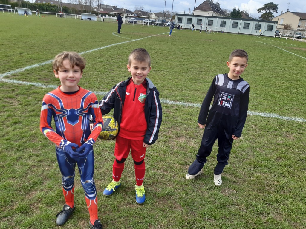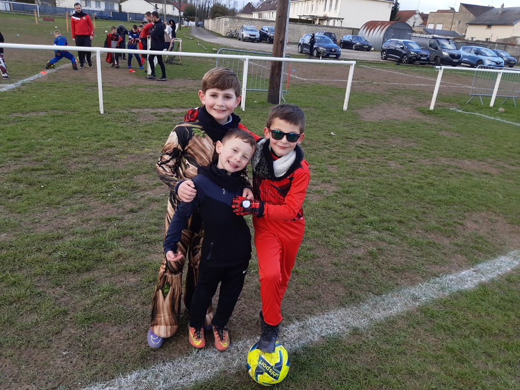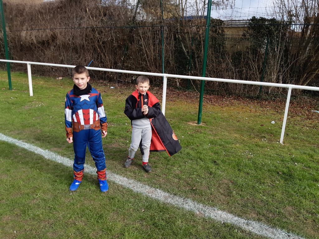 Un Samedi pas comme les autres au stade Thierry Doret, un après-midi dédié à nos catégories de Jeunes, de U6 à U9, sur le thème du carnaval avec la présence du club de AC Hermes Berthecourt dont l’éducatrice n’est autre que Clara Marques Filipe également joueuse Féminine au sein de notre club …Une parfaite réussite malgré un temps froid mais ensoleillé, les enfants déguisés, des jeux ludiques axés sur notre sport, et ce, dans la joie et la bonne humeur.Et cette petite récompense en fin d’exercices, un petit goûter agrémenté de boissons, gâteaux, et friandises, une juste récompense pour les efforts fournis…Une belle initiative créée par Sébastien, des joueurs nombreux et heureux, des parents présents, de quoi être satisfait du résultat final…Merci aux éducateurs présent des deux clubs, aux enfants, aux parents, grands-parents, pour leurs participations, et les apports en gâteaux, boissons, et confiseries…